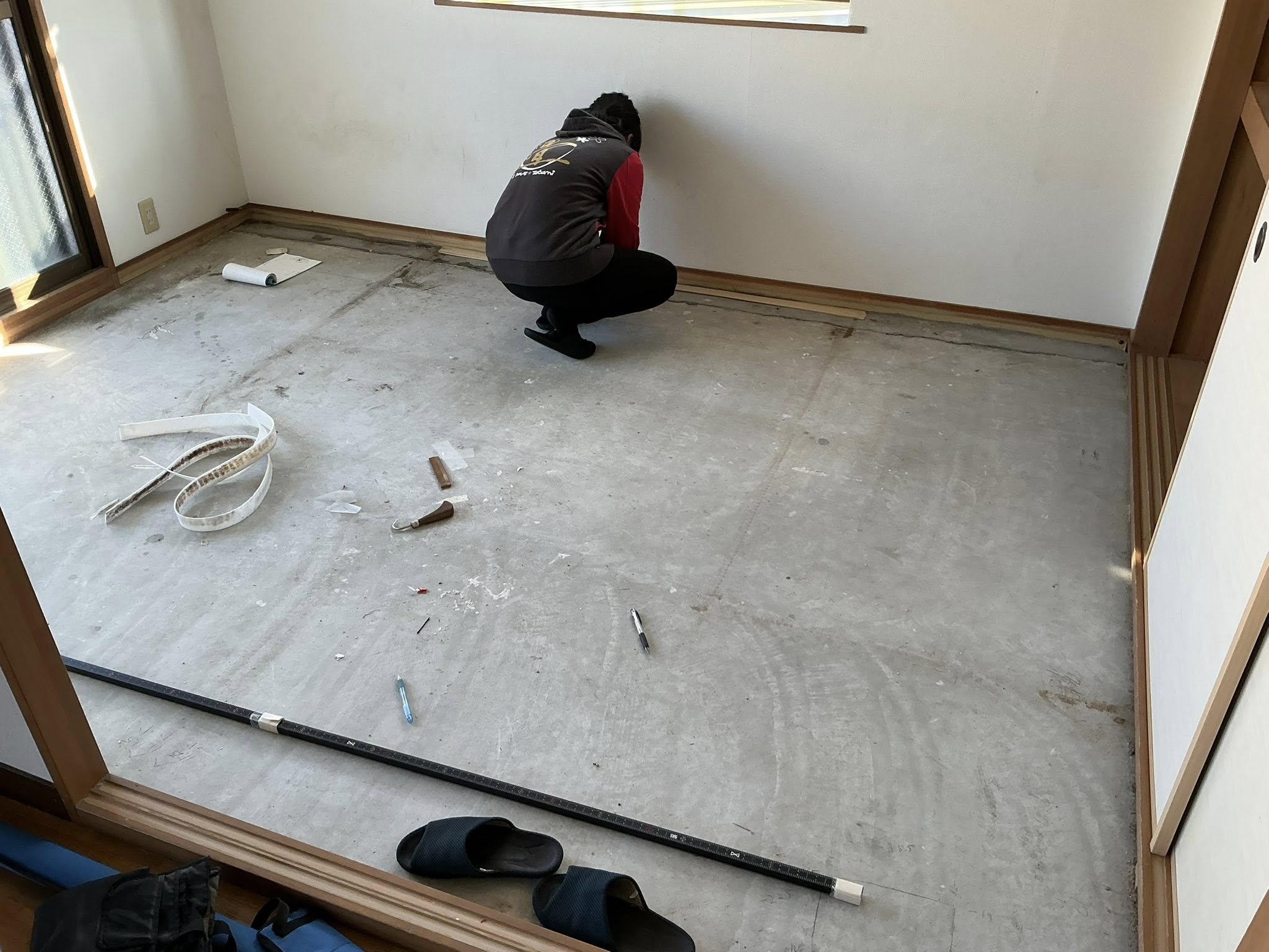 部屋の対角線を測って、畳の寸法を割り出す練習中。 機械を使えばもっと速いって? 測定器は僕しか使う事が許されません。 そもそもこれ表替えなんですけどね。 納期に余裕がある借家の現場は弟子の育成にもってこいです! さぁ頑張Read more…