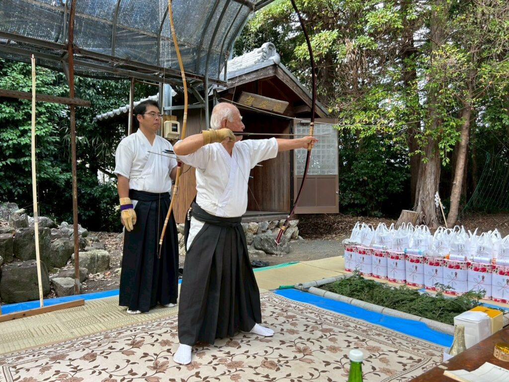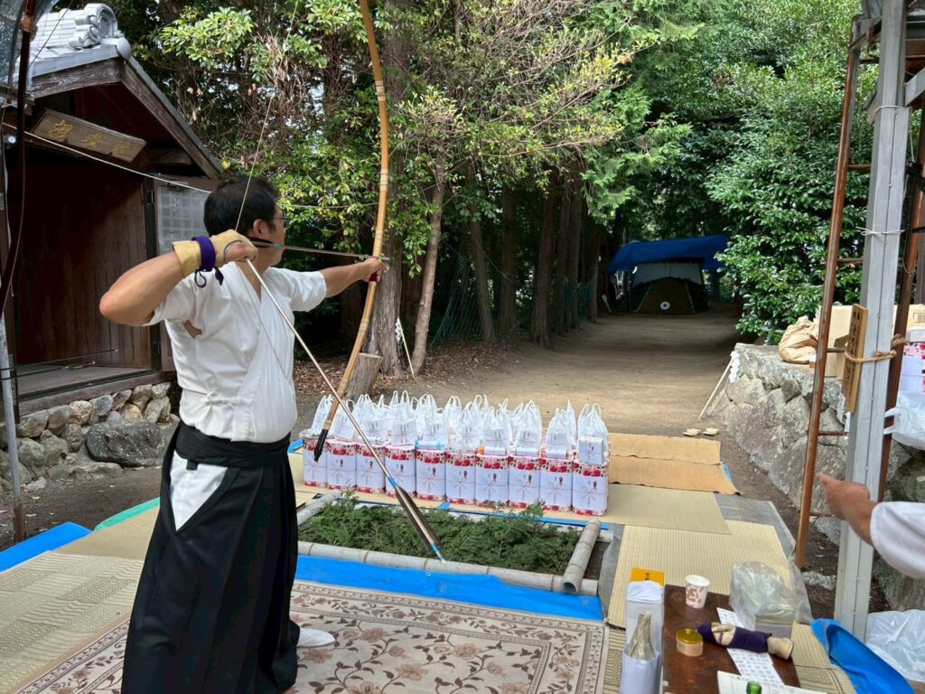 鬼の目に見立てた金的に矢が当たることで厄落としとなりお祭りが始まります。