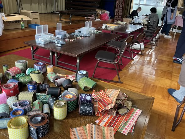 今日は桜木地区市民館にて、みんなの食堂と、福祉サロンの合同開催で、畳のコースターとくるみボタン製作やってます。